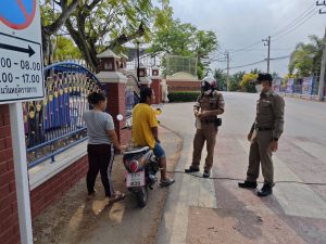 ว.4 ว.43 กวดขันวินัยจราจร ตามนโยบายสำนักงานตำรวจแห่งชาติและนโยบายตำรวจภูธรภาค 7 บริเวณหน้าโรงเรียนวันทามารีอาราชบุรี ม.5 ต.ประสาทสิทธิ์ อ.ดำเนินสะดวก จ.ราชบุรี