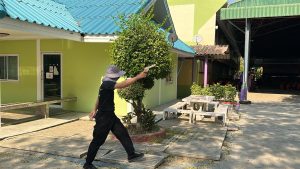 ณ โรงเรียนประสาทรัฐประชากิจ ต.ประสาทสิทธิ์ อ.ดำเนินสะดวก จ.ราชบุรี ในการป้องกันตนเอง หากมีสถานการณ์ที่อาจกระทบต่อชีวิตและทรัพย์สิน ตลอดจนวิธีการเอาตัวรอดเมื่อตกอยู่ในสถานการณ์ที่คับขัน ไม่ปลอดภัย ( อาทิ เช่น Active Shooter ) บุคคลคลุ้มคลั่ง วิกลจริต โดยยึดหลัก ( Run Hide Eight หรือ วิ่ง ซ่อน สู้ ) ตามแนวทางนโยบายของสำนักงานตำรวจแห่งชาติ