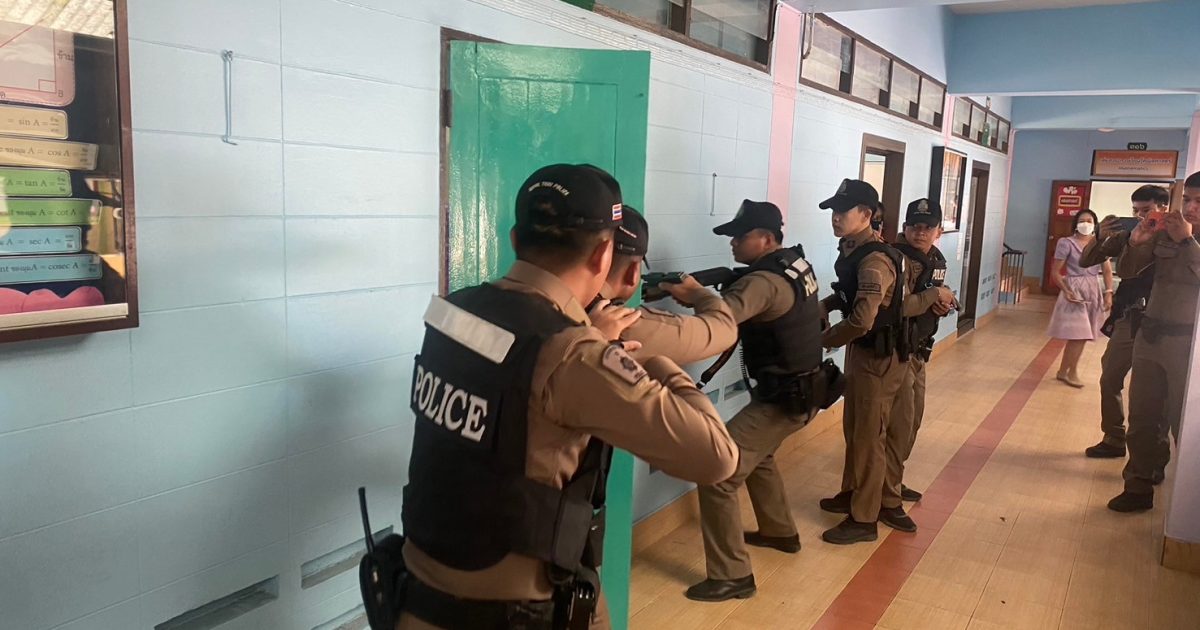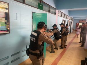 ณ โรงเรียนประสาทรัฐประชากิจ ต.ประสาทสิทธิ์ อ.ดำเนินสะดวก จ.ราชบุรี ในการป้องกันตนเอง หากมีสถานการณ์ที่อาจกระทบต่อชีวิตและทรัพย์สิน ตลอดจนวิธีการเอาตัวรอดเมื่อตกอยู่ในสถานการณ์ที่คับขัน ไม่ปลอดภัย ( อาทิ เช่น Active Shooter ) บุคคลคลุ้มคลั่ง วิกลจริต โดยยึดหลัก ( Run Hide Eight หรือ วิ่ง ซ่อน สู้ ) ตามแนวทางนโยบายของสำนักงานตำรวจแห่งชาติ