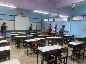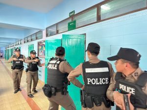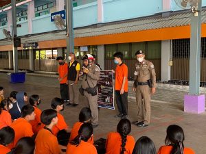 สวป.สภ.หลักห้า พร้อมด้วย สายตรวจรถยนต์ สายตรวจจราจรและชุดชุมชนสัมพันธ์ สภ.หลักห้า ดำเนินการออกประชาสัมพันธ์ และแนะนำวิธีการเอาตัวรอดให้กับคณะครูนักเรียน