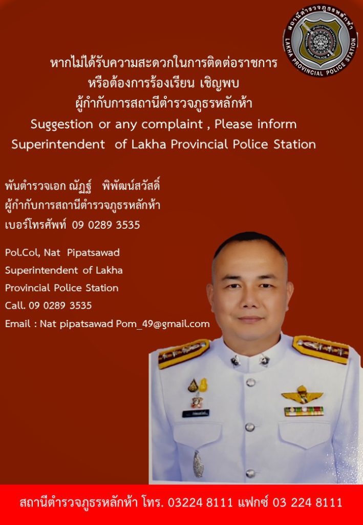 ไปรษณีย์อิเล็กทรอนิกส์  :  lakha@royalthaipolice.go.th