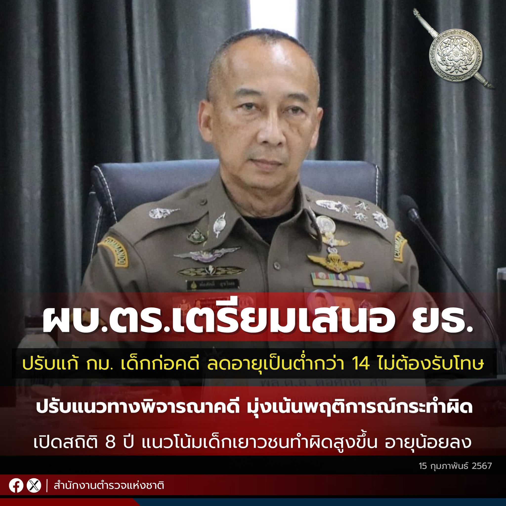 ผบ.ตร.รับรายงานผลการศึกษาอายุการกระทำผิดเด็กเยาวชน พบแนวโน้มทำผิดสูงขึ้นเกณฑ์อายุที่ทำผิดต่ำลง เตรีย