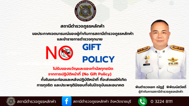 ชี้แจงประกาศของสถานีตำรวจ เรื่อง ต่อต้านการรับสินบนและไม่รับของขวัญและของกำนัลของหน่วย